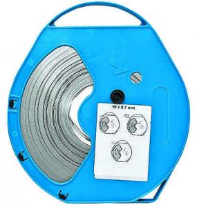 Обладает повышенной гибкостью, что значительно облегчает фиксацию ленты на опоре при помощи скрепы.