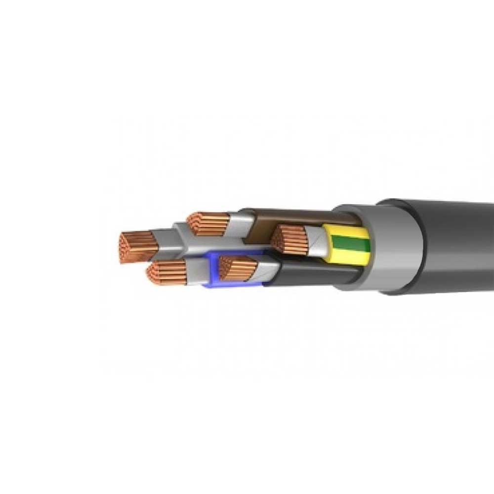 1. Пять однопроволочных или многопроволочных круглых уплотнённых или секторных токопроводящих медных жил номинальным сечением 50 мм2, соответствующих 1 или 2 классу по ГОСТ 22483-2021. 2. Термический барьер в виде обмотки с перекрытием не менее 40% из двух слюдосодержащих лент номинальной толщиной 0,14 мм. 3. Изоляция жилы из полимерной композиции, не содержащей галогенов, номинальной толщиной 1,3 мм. 4. Заполнение внутренних и наружных промежутков между скрученными изолированными жилами многожильных кабелей. 5. Поясная изоляция из полимерной композиции, не содержащей галогенов, номинальной толщиной 1,2 мм. 6. Разделительный слой в виде обмотки с перекрытием не менее 30% из стеклоленты или слюдосодержащей ленты номинальной толщиной 0,2 мм. 7. Оболочка из полимерной композиции, не содержащей галогенов, соответствующая категории Обп-2 по ГОСТ 23286-78, номинальной толщиной 2,1 мм.