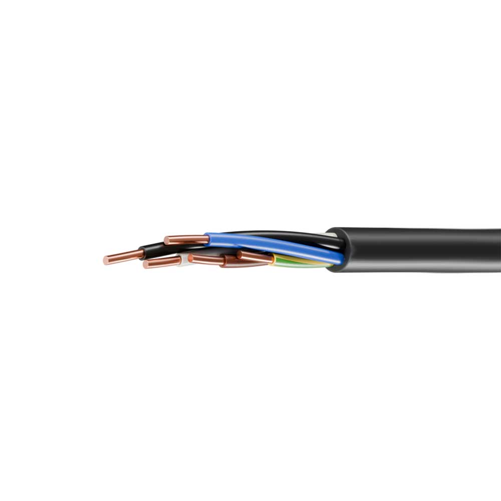 1. Пять однопроволочных круглых токопроводящих медных жил номинальным сечением 10 мм2, соответствующих 1 классу по ГОСТ 22483-2021. 2. Изоляция жилы из полимерной композиции, не содержащей галогенов, номинальной толщиной 0,9 мм. 3. Заполнение внутренних и наружных промежутков между скрученными изолированными жилами многожильных кабелей. 4. Поясная изоляция из полимерной композиции, не содержащей галогенов, номинальной толщиной 1,0 мм. 5. Оболочка из полимерной композиции, не содержащей галогенов, соответствующая категории Обп-2 по ГОСТ 23286-78, номинальной толщиной 1,8 мм.